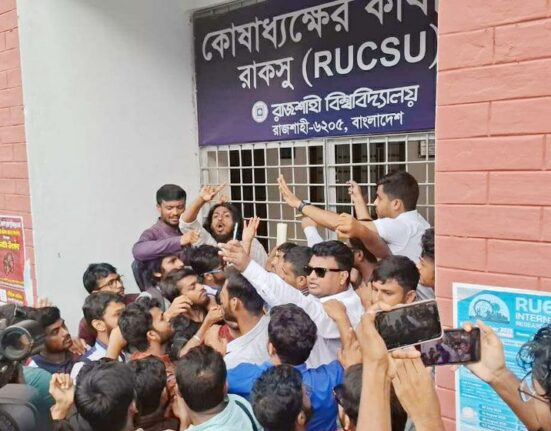 রাজশাহী বিশ্ববিদ্যালয় কেন্দ্রীয় ছাত্র সংসদের (রাকসু) ভোটার তালিকায় প্রথম বর্ষের শিক্ষার্থীদের অন্তর্ভুক্ত করার দাবিতে অবস্থান কর্মসূচিতে শিক্ষার্থীদের প্রতিরোধে মুখে পড়েছে শাখা